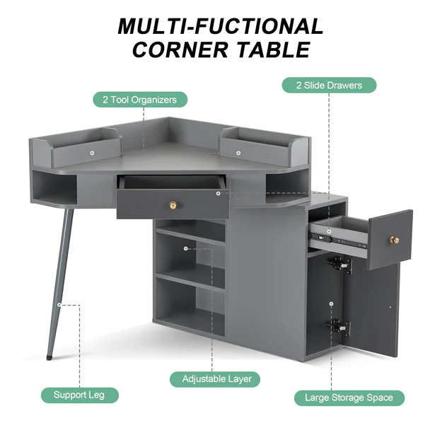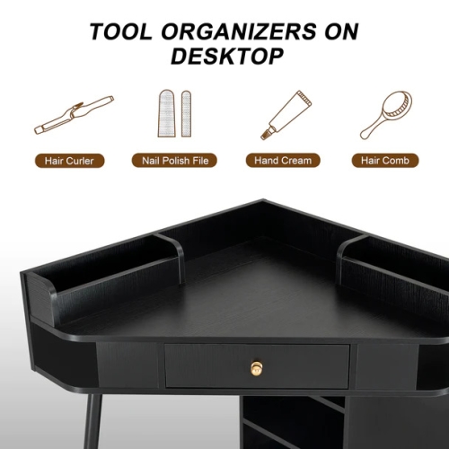 Have you thought the problem that you can take advantage of the corner space? Please be assured that this multi-purpose corner desk will be a great solution due to its unique design and ample storage space. Corner table design with classic appearance is able to give you a better choice whatever nail store, makeup, dressing, salon or living room and etc.. We believe that owning this nail table, you will get a good assistant for all the work!