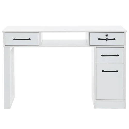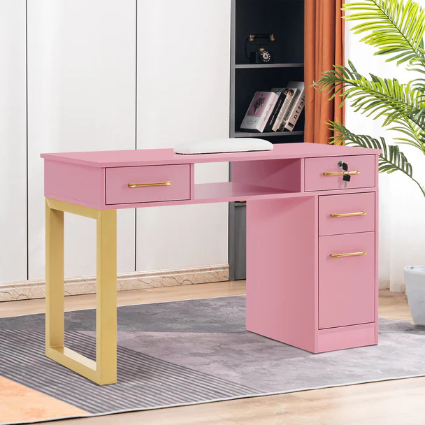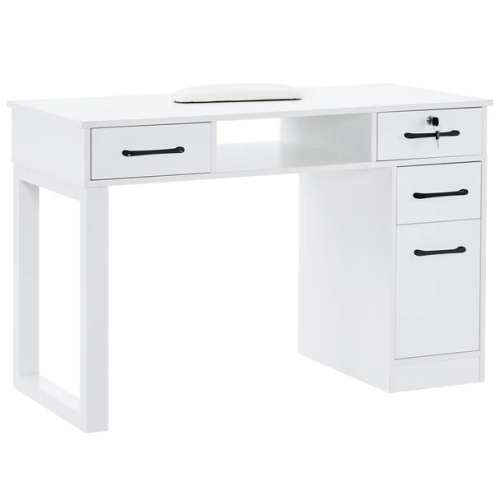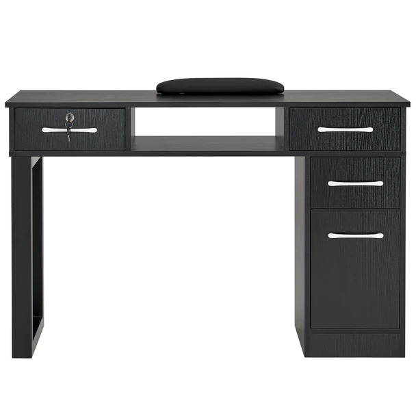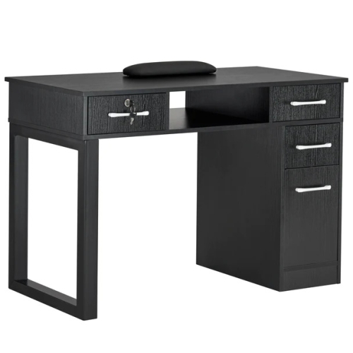 - Ergonomic Design: With an elegant wrist rest padding for providing comfortable support to client's arm, this beauty salon workstation could help relieve soreness caused by long-time manicure. The Arc-shaped handles offer the perfect grip for your drawers.