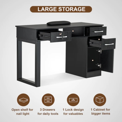 - Large Storage Space: The manicure table is designed with 3 drawers including 1 lockable drawer with 2 keys can keep your valuables, 1 cabinet and 1 open shelf which provides for manicurists to place nail light.