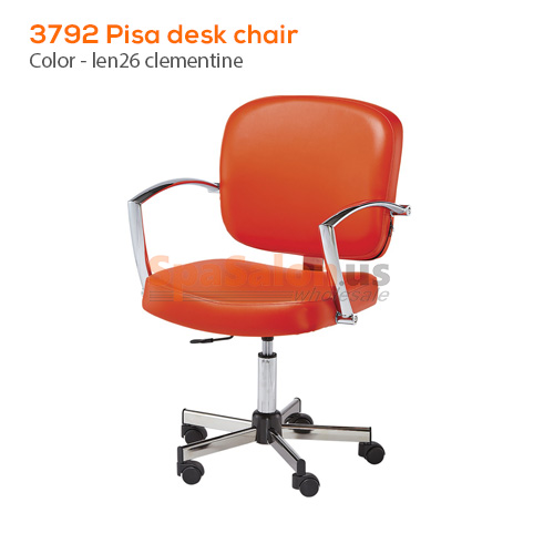 The Pibbs 3792 Pisa Desk Chair is perfect for use in any salon or spa. Since this chair is on an adjustable pump, it will work perfectly with any reception desk or podium. This salon reception chair comes complete with a durable 5-star caster base and comfortably padded seat and back. Available in over 35 vinyl colors, you can perfectly match this salon reception chair to the decor of your salon or spa.