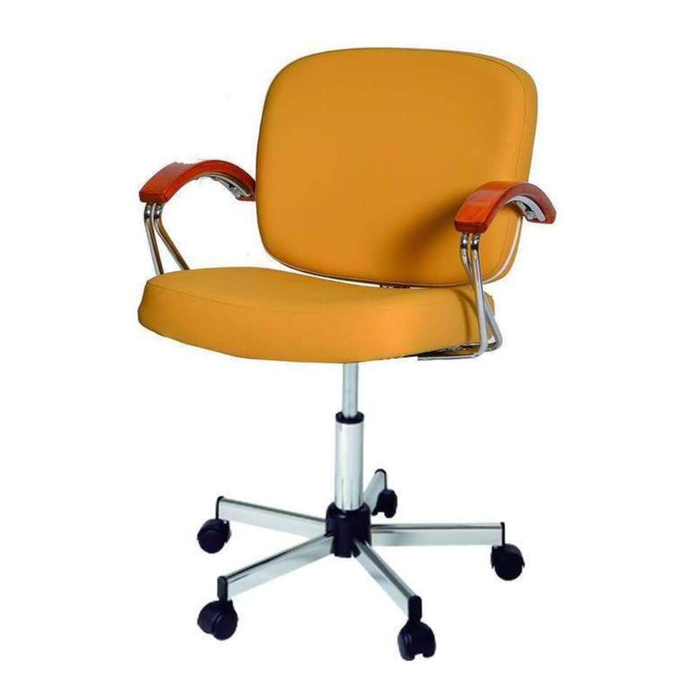 The Samantha Desk Chair is a stylish and durable desk chair with rich, cherry finished wooden arms and an extra wide padded seat for extreme client comfort.