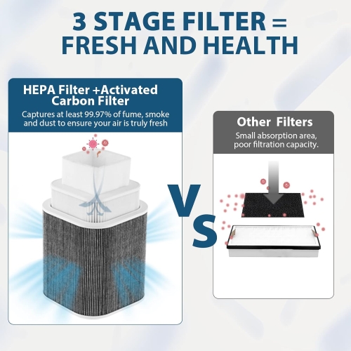 - 3-STAGE FILTER - The 3D filters has 4 times the dust holding capacity of the old one. Cotton filter, central High Efficiency Particulate Air filter and activated carbon filter absorb all smoke, dust and harmful gases at work. The upwind diversion design allows harmful particles and gases to contact the 3-stage filters more fully and evenly, making the filter element more efficient. Truly no emissions.