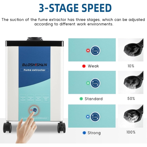 - 99.97% PURIFICATION RATE - BAOSHISHAN fume extractor can create a powerful 106 CFM airflow to absorb fumes and purify the air. It has passed the environmental impact assessment test and certification, the purified air meets the hygienic standards. High purification rate allow you to breathe fresh air again.