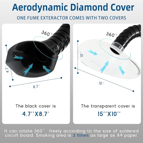 - HIGHLY SEALED STRUCTURE - Our metal latches very tightly closed the main filter bulk, completely seal the fumes during operation to prevent any leak. Each inner connecting section of the suction pipe has fine convex points, greatly enhance the stability and sealing of the pipeline, can be bent and fixed at any angle at will.