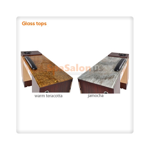 - The Ion Manicure Table features a sleek, two-tone color design with beautiful tempered glass top options.
