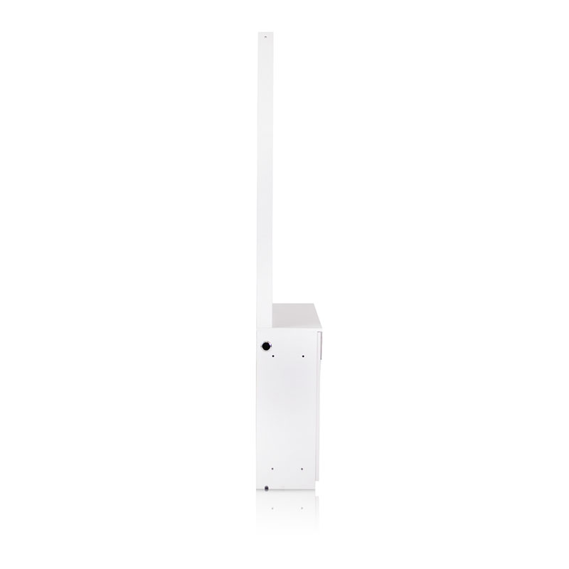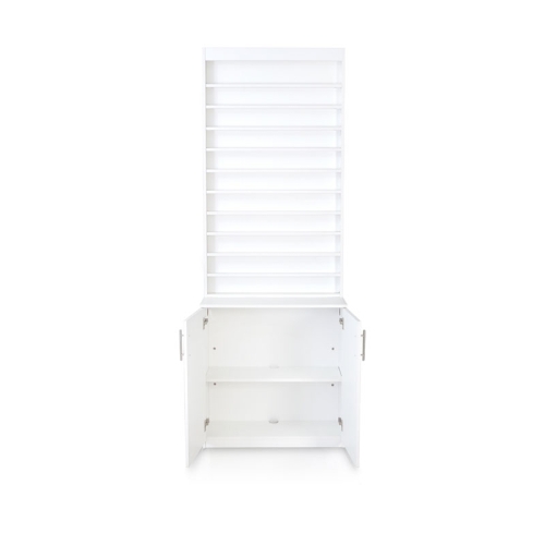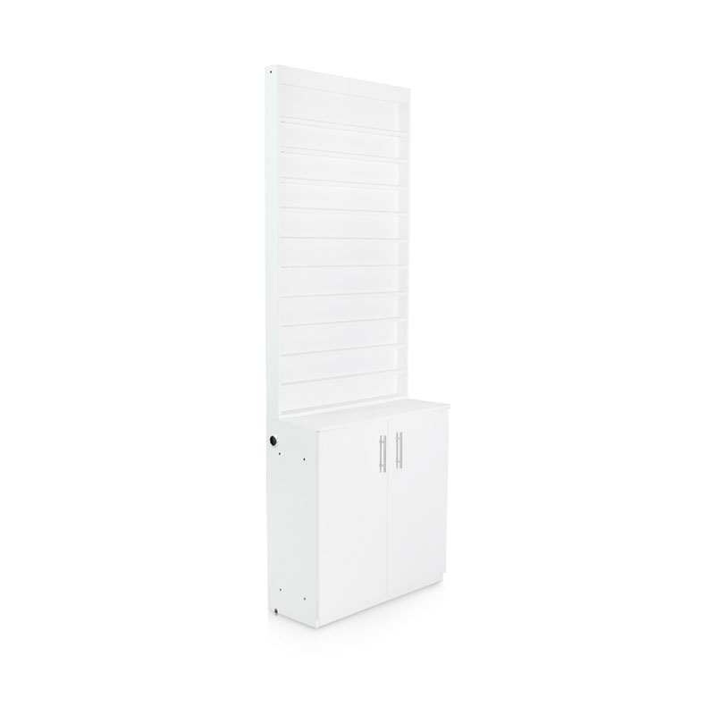A gorgeous white cabinet to display nail polish and gel. If using along with the DreaMau, showcase your custom-made polish and gel colors to advertise the valuable service you provide—the ability to create any shade a customer requests in minutes.