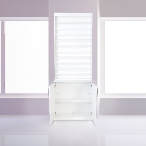 - Pristine white cabinet to display nail polish and gel collections