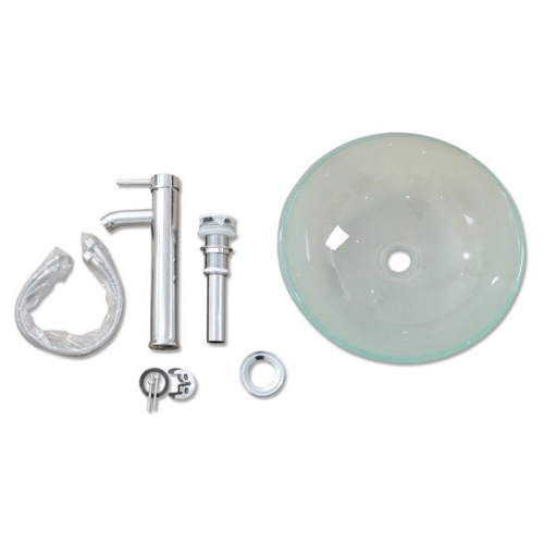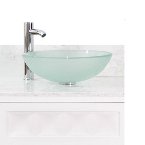• Lovely glass sink bowl sits atop luxurious marble countertop