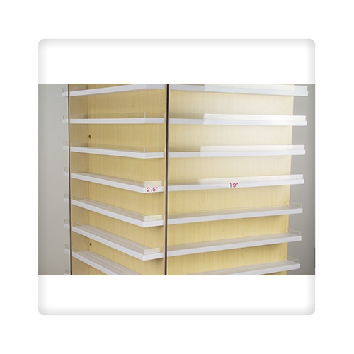 - Display shelves dimension: Length: 19", Width: 2.5"