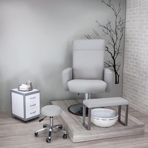 Balance Foot Rest legs made of steel and powder coated in light grey color, adds stability to your pedicure setup. With predrilled holes, you can easily mount on any platform that is made of wood or tile. You can also use as a standalone foot rest. Foot rest has a flat surface and is generously padded to ensure clients' comfort during pedicure service.