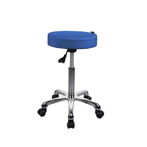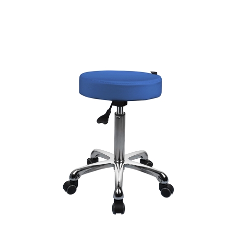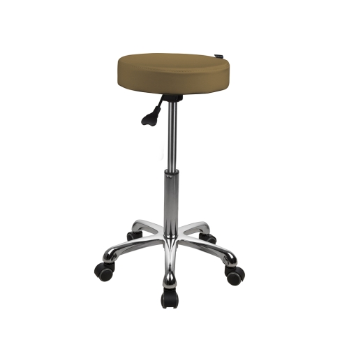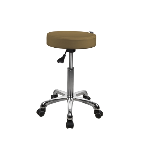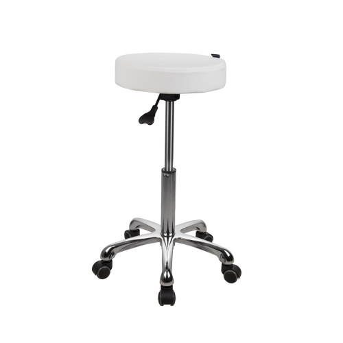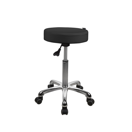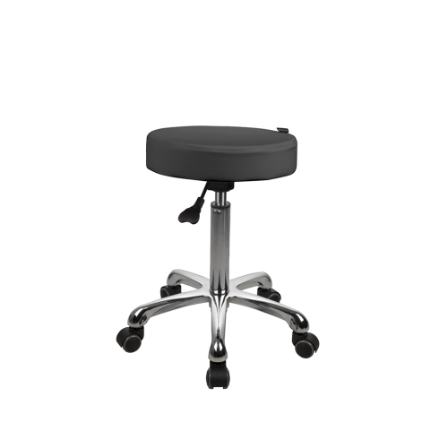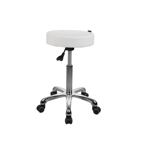 Comfortable and elegant stool. Ergonomically designed with flat seat to ensure maximum comfort. It is equipped with a gas lift pump to adjust height. Upholstered in high-quality PU. High stability 5-wheel chromed base.