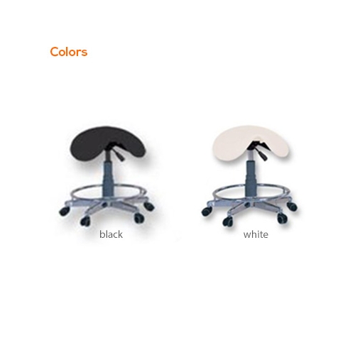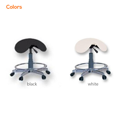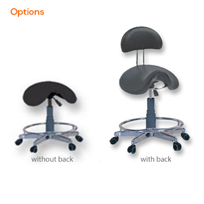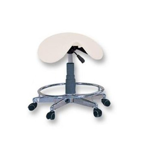 - Rolling saddle stool with hydraulic adjustable height.