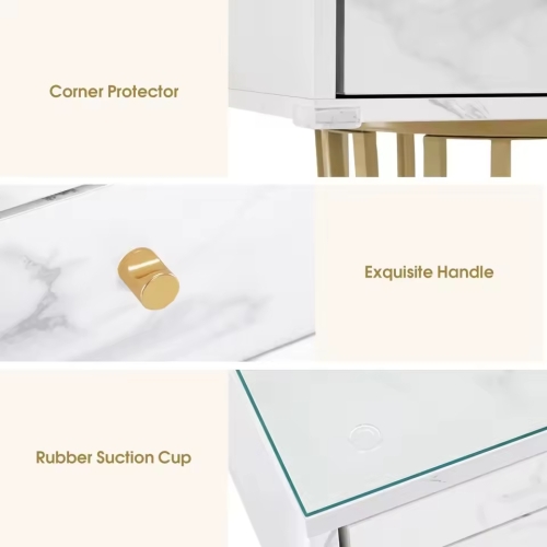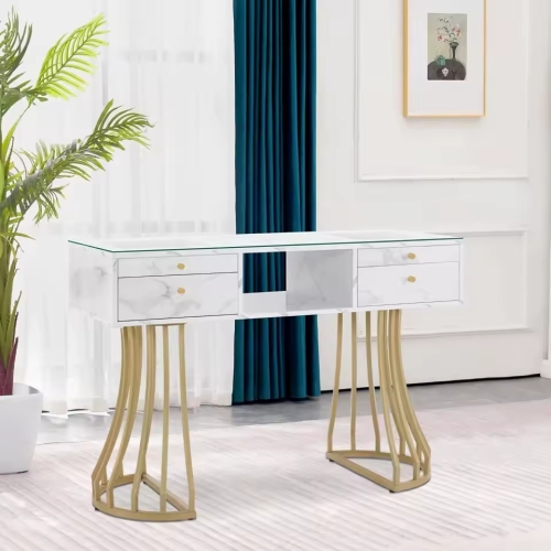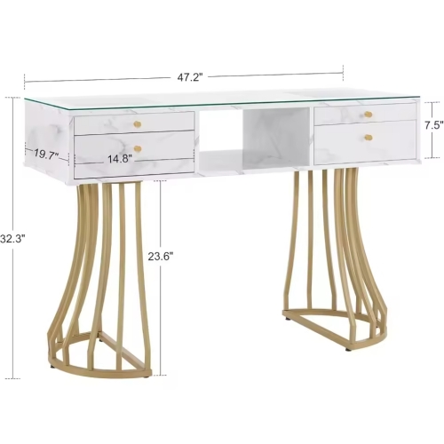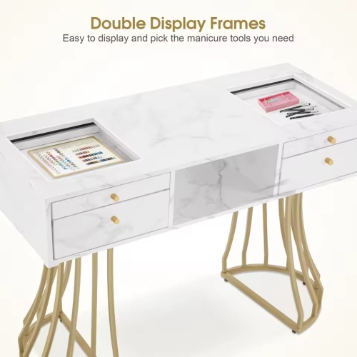 - Considerate Design: Anti-collision design on the corner edges and legs without sharp edges are the two highlights. The gold powder coated crafted support legs are sturdy and stable. It can create a safer working and consumption environment for nail technicians and customers.