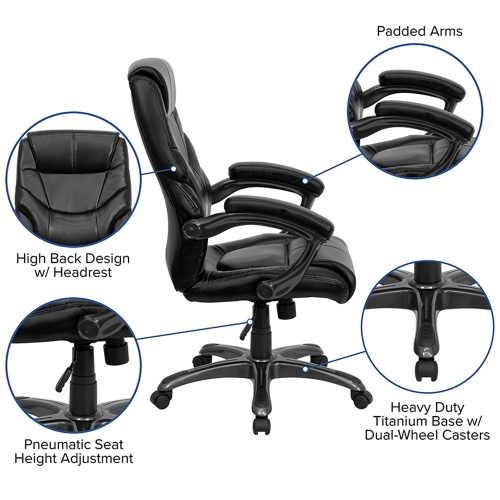 GO-724H-BK-LEA-GG High back office chair