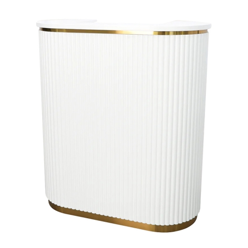 Our most popular René Reception Desk now available in a Petite size. This vintage inspired piece is the perfect way to invite clients into your space. Soft lines, neutral tones and solid construction round out any entry way space from salon reception to hostess stand - the smaller size is perfect to fit more narrow spaces.