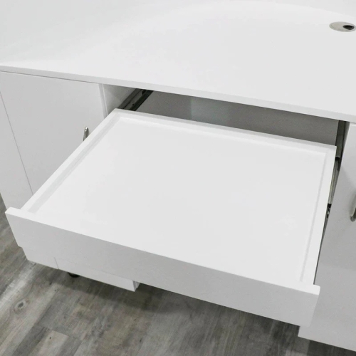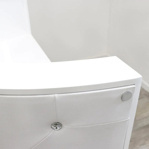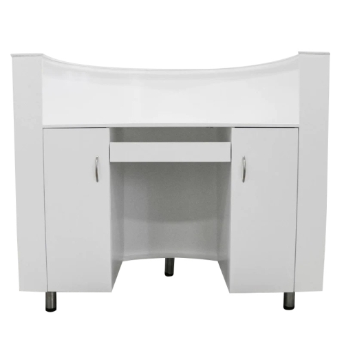Welcome your customers with Keller’s ultra-desired Glam Reception Desk. This glamorous reception desk gleams with a bright white ambiance that’s both inviting and alluring. Its supportive functionality helps you verify check-ins, settle one's bill and manage your busy schedule all in one place. Let the glam reception desk be your salon statement piece when greeting clients!