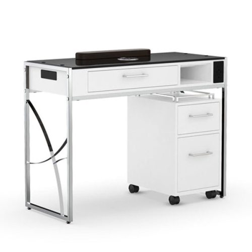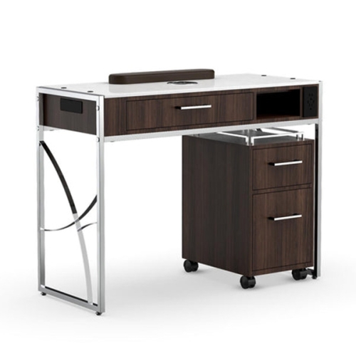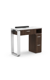 Discover Elegance Redefined with the LX Manicure Nail Table - M4: Where Style Meets Function! Elevate your salon experience with this stunning rolling manicure table. Available in timeless white, rich dark hazel, or warm walnut, its sleek modern design seamlessly blends aesthetics and functionality. Unleash your creativity with three spacious drawers for all your essentials, keeping your workspace clutter-free. Glide effortlessly through your salon on smooth rollers, while the LX M4 adds a touch of sophistication to your nail artistry. Elevate your space, elevate your art – with LX M4.