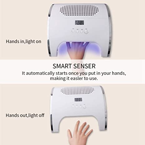 - EASY TO OPERATE -- With infrared sensor function, it automatically starts once you put your hands in it, making it easier to use. Timing function, 10s, 30s, 60s and 99s for choosing, meet your different needs. Simply placing hands beside the windthroat holes, and meanwhile applying the nail art care.