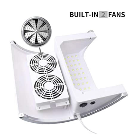 - POWERFUL WIND -- The powerful nail dust collector is equipped with 2 strong fans to collect the chippings and debris into the dust bag while you are filing or polishing nails. Nail art dust suction collector with 2 replaceable dust collecting bags, easy to fit over the fan output, also can be changed and washed