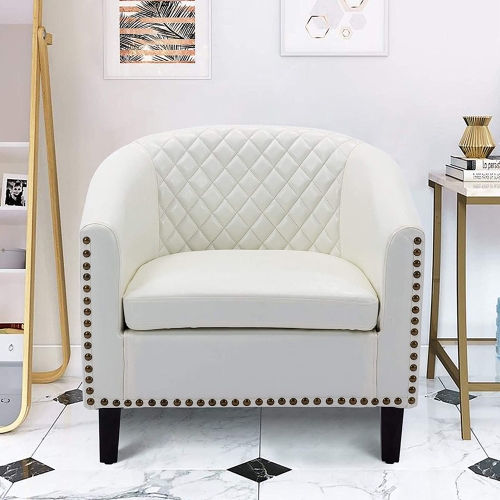 - Mid-Century Single Sofa: Rubber wood Leg; Solid Plywood Frame. With this leisure Barrel chair , it is easy to decorate your living room or bedroom to be more beautiful and stylish. Ideal for small spaces, this chair work great in offices, bedrooms or living rooms
