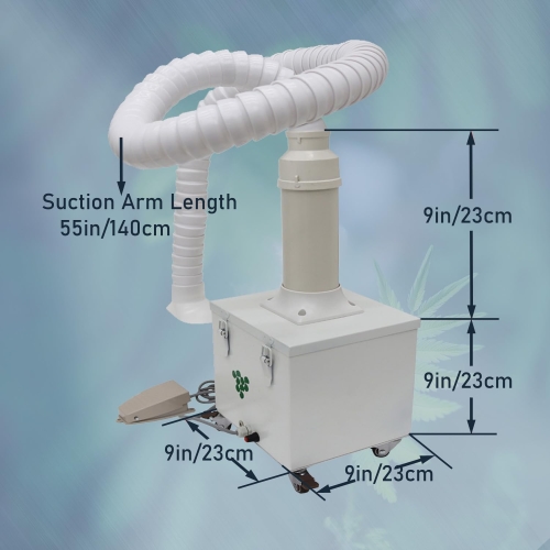 - Easy to Use: 1.4 meters long suction arm, can be bent at any angle, durable, no deformation. With 4 universal casters with locks, easy to move, locked and fixed during use, and the machine does not shake
