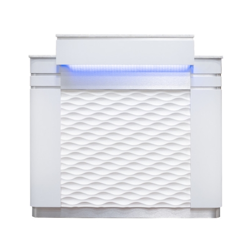 Introducing the newest addition to the NAPA line - the NAPA Square Reception Desk! Boasting a sleek white and silver color combination, this desk is the epitome of modern sophistication. With its LED light and marbled top, it's sure to impress your clients from the moment they walk through the door.