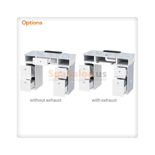 * With Exhaust vent: Vent will always be in center of table. The customer can choose to vent it out of either side the right or left. It is interchangeable