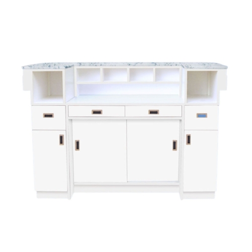 White and grey marble top with a grey mosaic front to create a luxury look. with high end with LED.