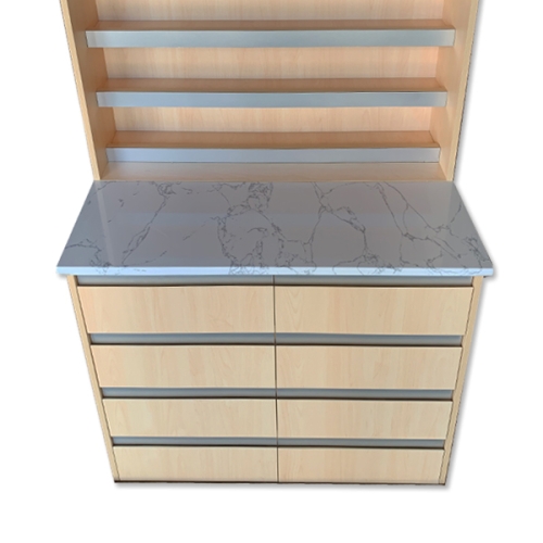 - Holds up to 500 Polish Bottles or 350 Powder Bottles ( less than 2oz ). Will store more inside the 8 sliding drawers!