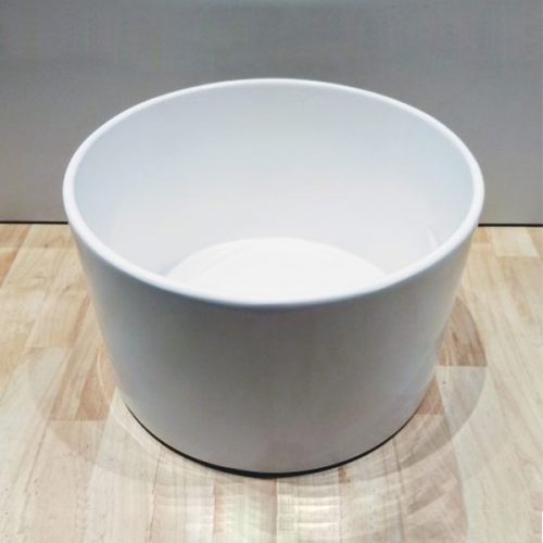 The Pedicylinder solid surface pedicure bowl, the nonporous solid surface means that with proper cleaning, solid surface will not harbor the growth of bacteria, mold or mildew. Unlike ceramic bowls solid surface's material goes all the way through and does not chip and is impact resistant. The Pedicylinder solid surface basins retain water temperture longer than ceramic which dissipates the heat. Designed for low water use, 4.5 gallons is required to do a pedicure, but with the deep design water can be increased for a deep soak of the legs.