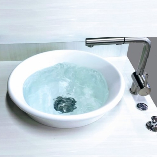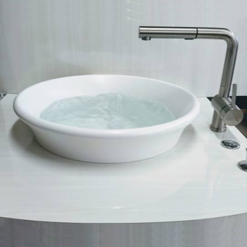 The optional Pedipot solid surface pedicure bowl, the nonporous solid surface means that with proper cleaning, solid surface will not harbor the growth of bacteria,mold or mildew. Unlike ceramic bowls solid surface's material goes all the way through and does not chip. The Pedipot solid surface basins retain water temperture longer than ceramic which dissipates the heat. Design for water conservation and filling speed only 4.5 gallons is required to do a pedicure, but with the deep design water can be increased for a deep soak of the legs. The Pedipot bowl can be configured with optional pipe less jet. The Pedipot can be recessed as shown or top mounted to countertop.