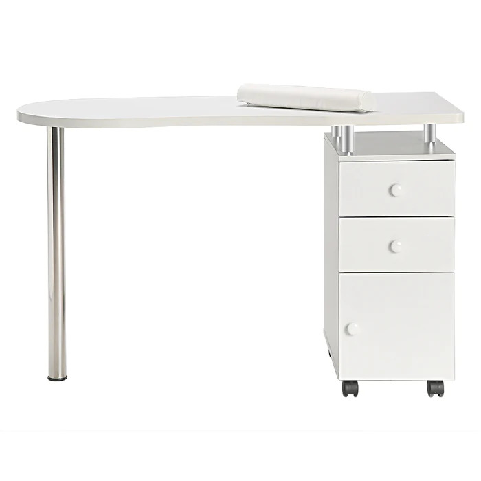 Welcome to our site! We are glad to give you a recommendation of this Manicure Nail Table with Drawer. Adopting high quality P2 Particleboard and Stainless Steel Frame frame material, it features smooth, sturdy and durable. It comes with elegant wrist rest on table top, which is convenient and comfortable. The table also includes some drawers, which can contain many manicure tools. The great functionality makes this table perfect for any beauty salon. So what are you waiting for? Don't hesitate, just buy it!