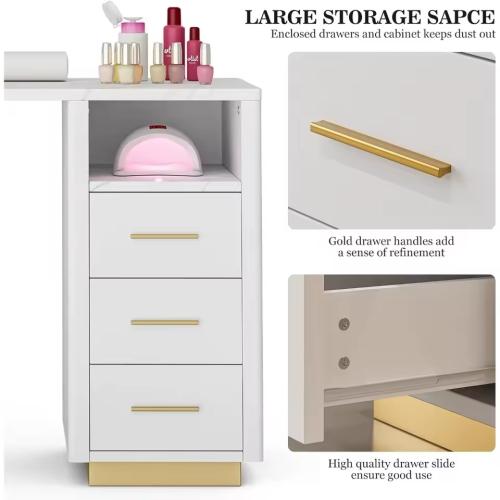 - Large Storage Space - The desk has 6 drawers and 2 open storage compartments for nail tools and nail polish. Different types of storage space can meet different storage requirements