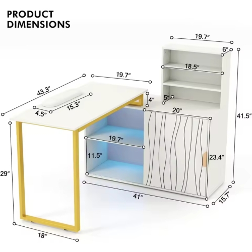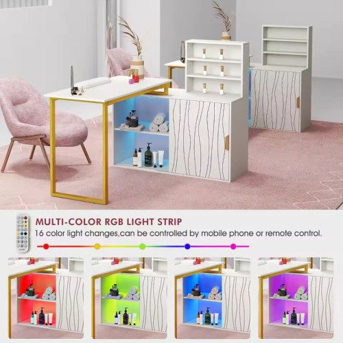 - LED LIGHT: This professional nail table comes with led strip light, remote on/off and color control, Soft and bright lighting perfectly suited to your nail salon