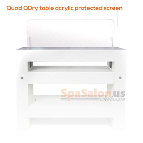 - Sturdy, clear screen for Quad Quick Dry Table to protect clients from coughs, sneezes, and respiratory droplets