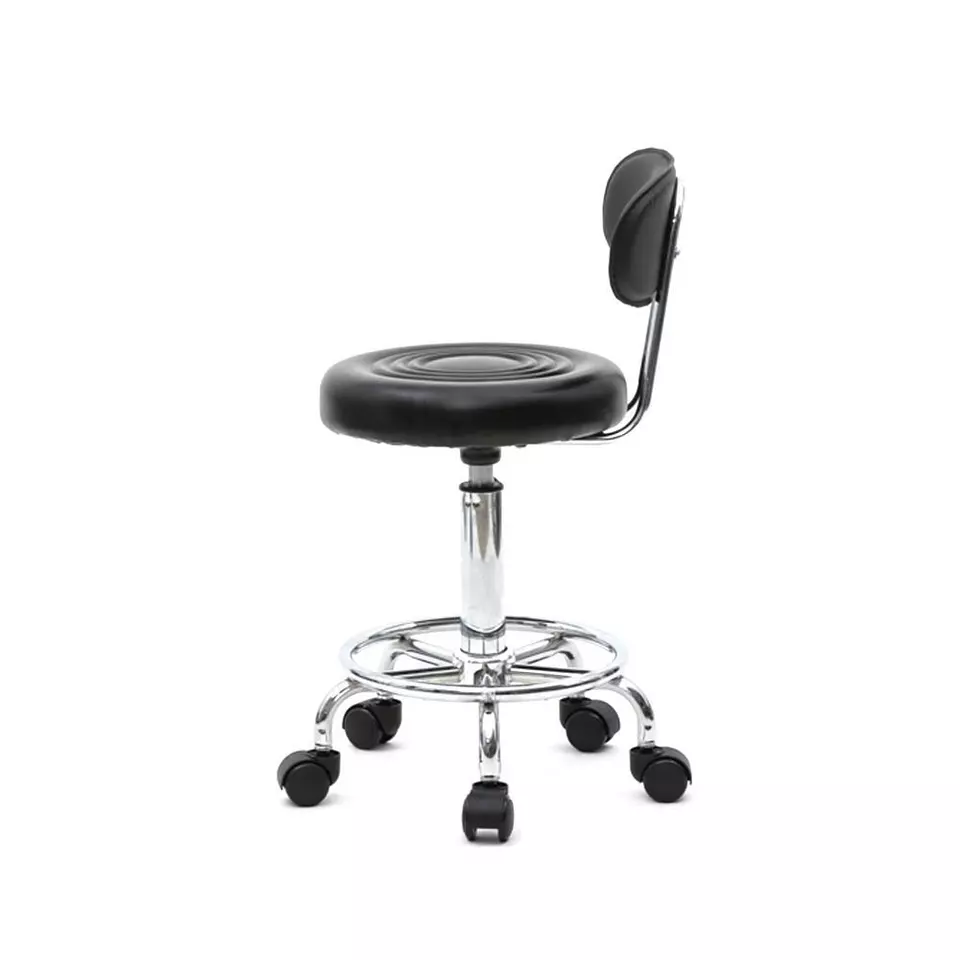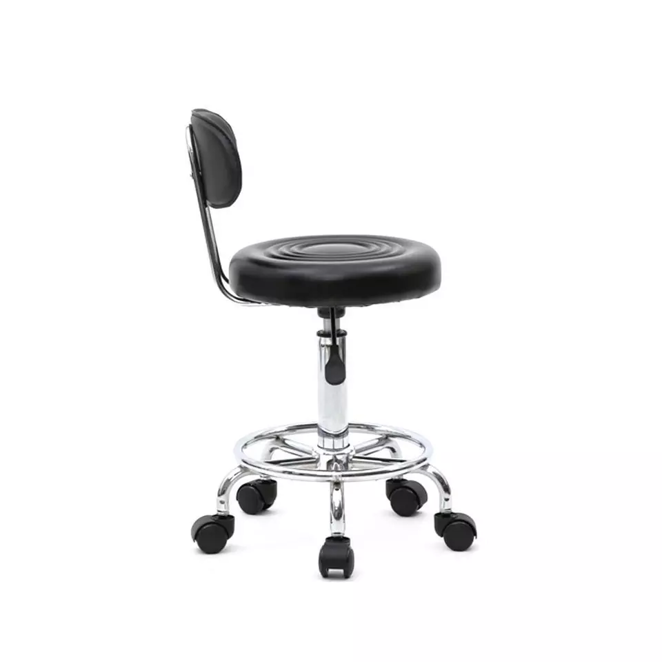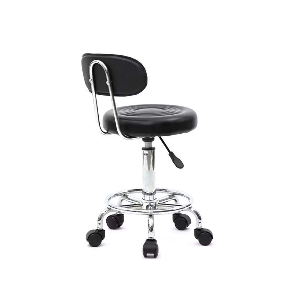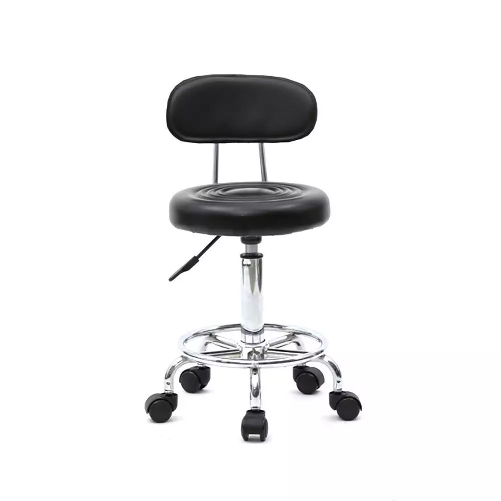 - Are you looking for a high quality adjustable salon stool? Then this Round Shape Adjustable Salon Stool with Back and Line is an excellent choice for you! It is made of high quality PU leather & sponge & iron plating chrome material, durable and safe for your or your family use a long time. With a light weight and practical design, it is easy for you to move it. It also features anti-skidding and anti-rust design, so you can rest assured to buy it! You will feel satisfied!