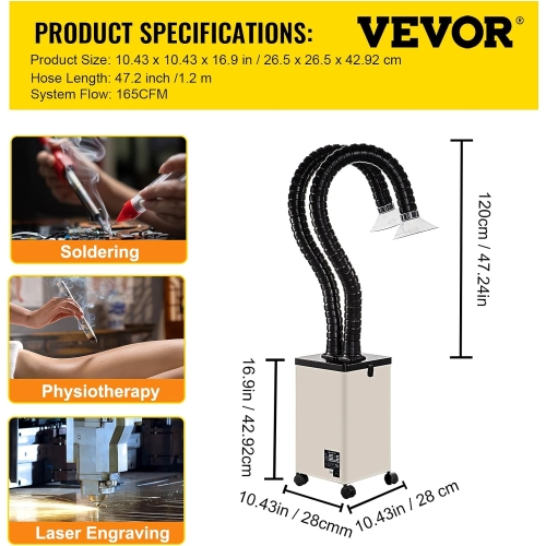 - 99.91% Purification Efficiency: Equipped with a robust 150W DC motor, VEVOR solder fume extractor generates an impressive airflow of 165 CFM to efficiently exhaust and purify air. It boasts a remarkable smoke purification rate of 99.91%, ensuring you can enjoy fresh air again.