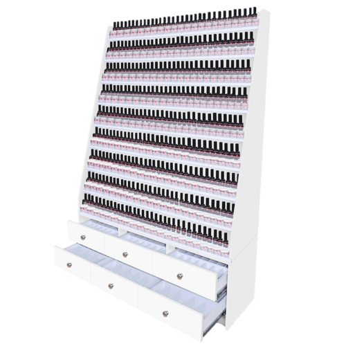 - Hold up to 340 Polish Bottles and 200 2 oz Powder Jars