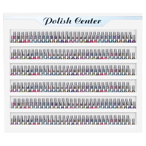 The "Sonoma Double Polish Rack" is the perfect wall hanging rack for your salon. In white with silver accent, this shelf will showcase colors beautifully. The 6 double tiered shelves will allow you to display 360 nail polish colors.
