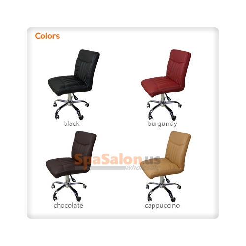 Equipped with MEMORY FOAM. Features a tilt-turn mechanism with tension adjustment. Acetone-resistant leather make it perfect for nail salons.