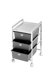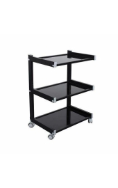 This facial cart features a white stainless steel frame with 3 laminate shelves.