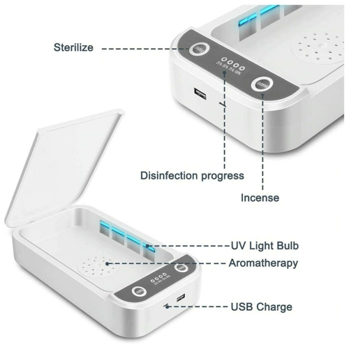 3. QUICK CLEANING IN 3 mins .This sterilizer box adopts harmless ultraviolet light disinfection, offering high sterilizing rate up to 99.9%; UV light at wavelength 253.7mm is easily absorbed by organisms,Thereby quickly cleaning by destroying DNA. Can kills Unclean things on your phone.