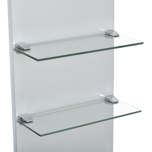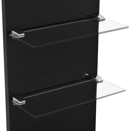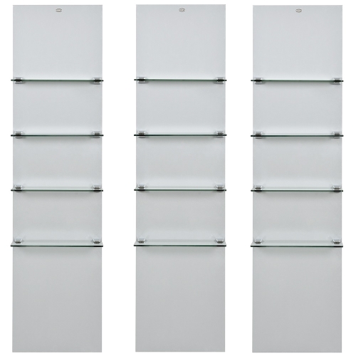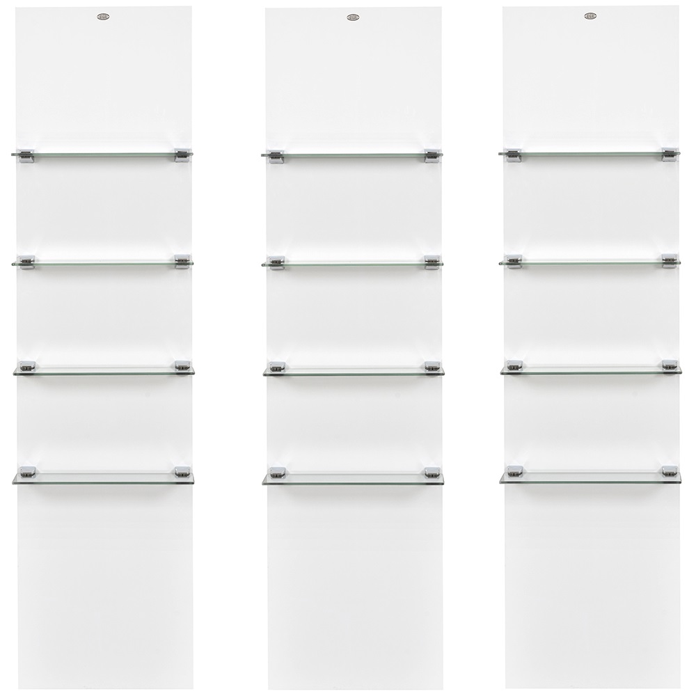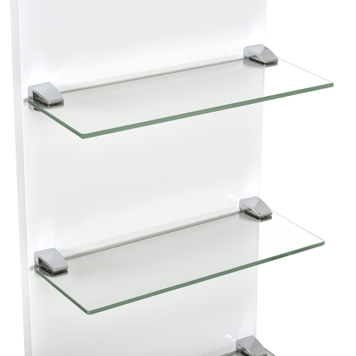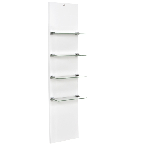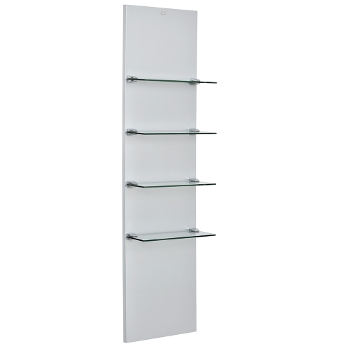 The Vina wall mounted Display shelf is made to function to any wall space and also made to fit next to styling units with a simple but elegant Design with frosted glass shelving to bring the viewers attention straight to the products added to each shelve.