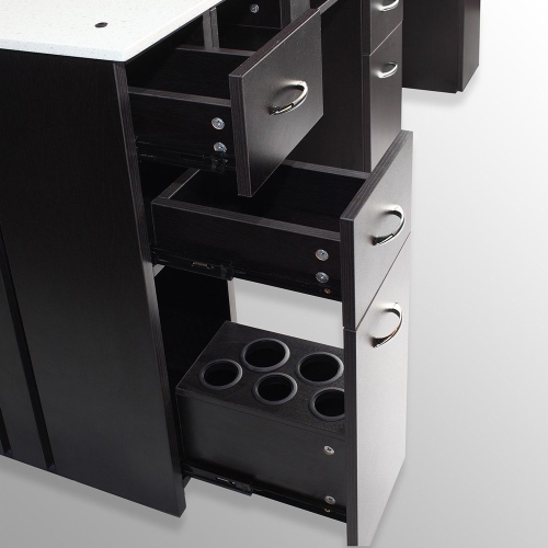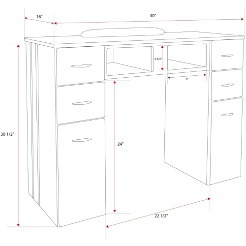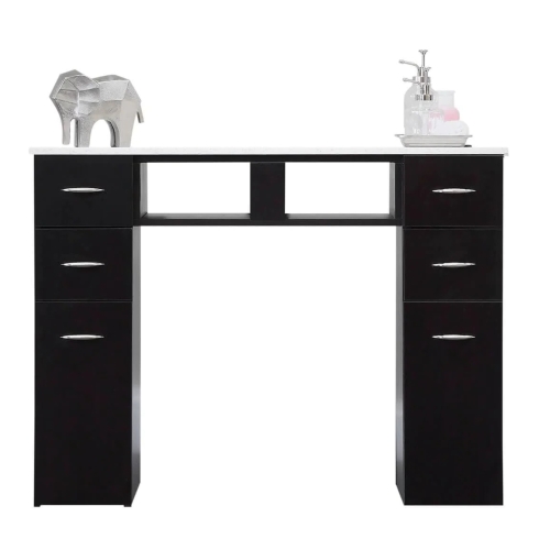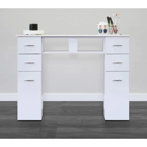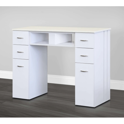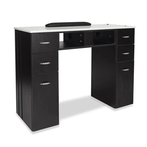 With two (2) UV dryer slots, pre-drilled holes so you can install your own nail table lights, six (6) functional drawers to store your larger bottles, and a specialized trash compartment, there’s room for everything. Get this nail table for a comfortable, compact workspace.