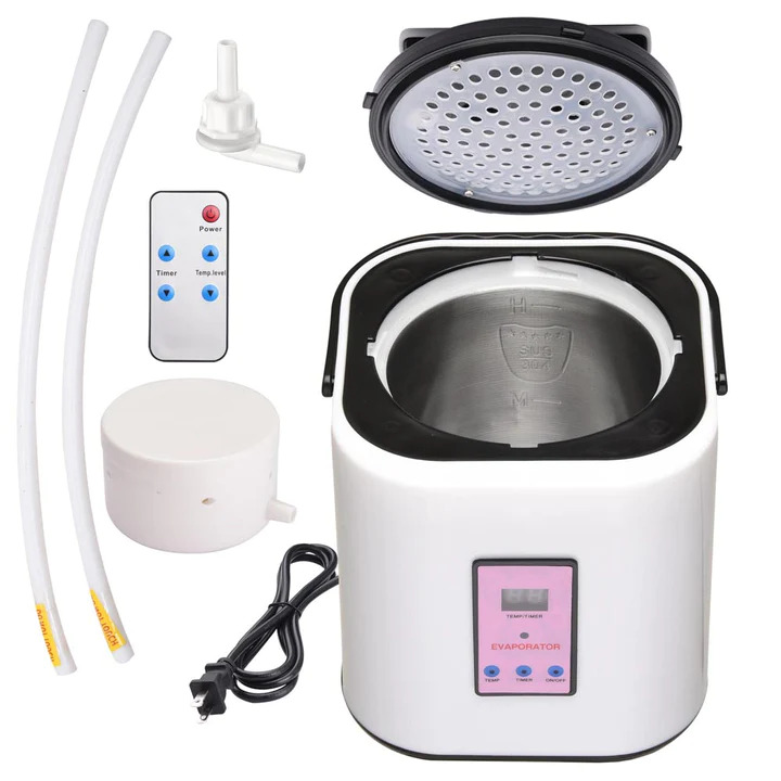 Sauna Steamer Portable Pot Steam Generator fits for home use portable sauna tent to warm up & fill the tent with steam. It has 9-level temperature adjustment & 6-level time setting to fit different needs such as help you achieve beauty & relaxation effects.