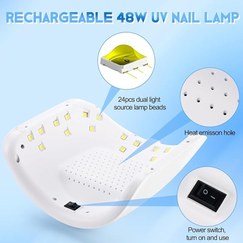 - Fast Curing Lamp: UV gel nail lamp adopts advanced dual light beads technology to simulate uv sunlight to cure all kinds of nail gels. 24pcs lamp beads full cover ensure to cure your nails evenly and quickly.Enjoy ideal professional salon nail art easily and freely at home.