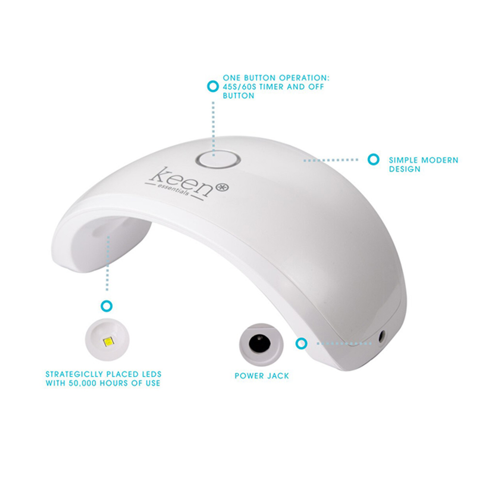 - Easy to Use: This lamp has a one-button design with a built-in timer. Press the button once for 60 seconds and twice for 45 seconds. This setup is easy to use for even the nail art beginner.