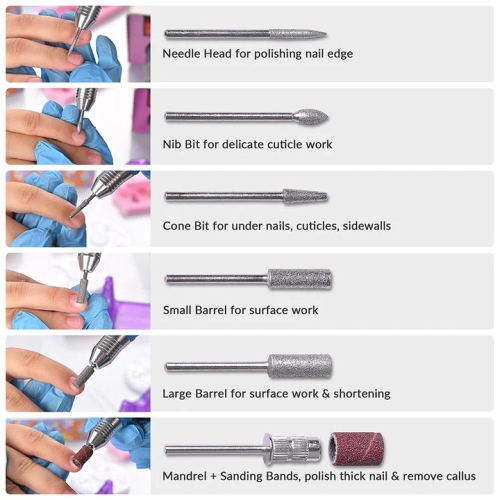 - Easy to change the bits for different purposes like polishing nail edges, delicate cuticle work