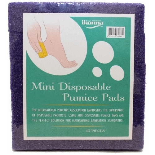 Ikonna Disposable Pumice Pads 40pcs- Medium Purple PPAD-S4PU are used on the feet to smooth rough and callused skin. The international pedicure association emphasizes the importance of disposable products. Using mini disposable pumice bars are the perfect solution for maintaining sanitation standards for your clients. - Grit: Medium Coarse - Pack: 40 Pieces of disposable pumice pad - Colour: Purple