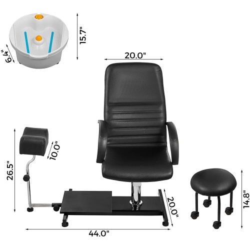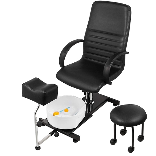 Hydraulic Lift Adjustable Pedicure Unit with Easy-Clean Bubble Massage Footbath and FREE Technician Stool